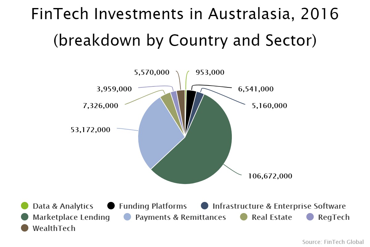 The biggest sector of Australian FinTech is the marketplace lending space, with it representing more than half of the total funding in the country.
