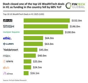 In other news, the WealthTech sector suffered a bump in H1 in the US market, with deals falling 68% year-on-year.