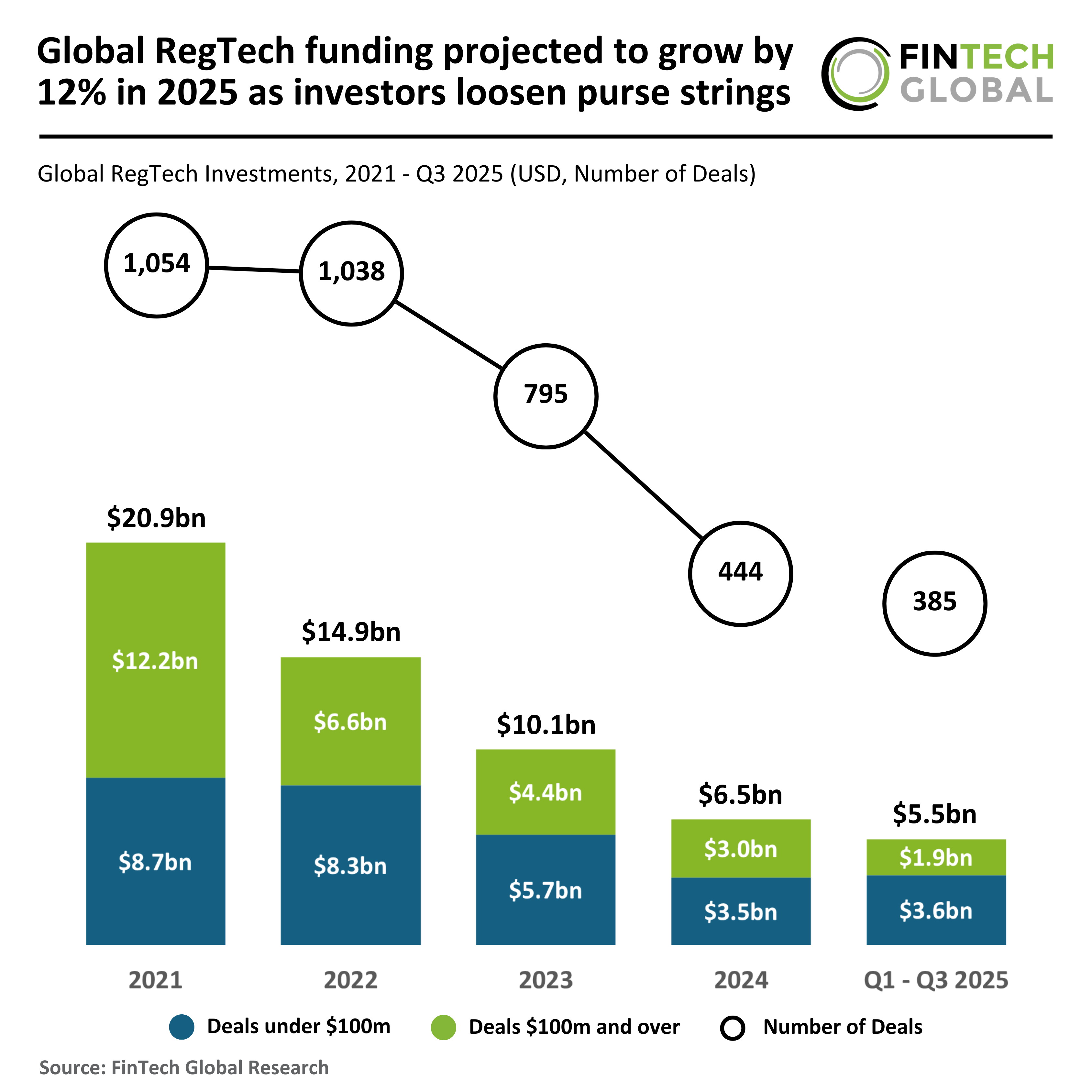 - Global RegTech funding increased by 7% YoY