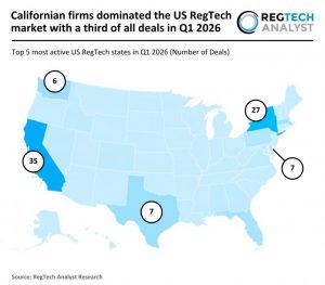 Recent research by FinTech Global found that US RegTech investment reached $2bn in Q1 2026, across 103 deals, a 28% rise in funding and a 36% increase in deal volume compared with Q1 2025, when 76 transactions raised $1.6bn.